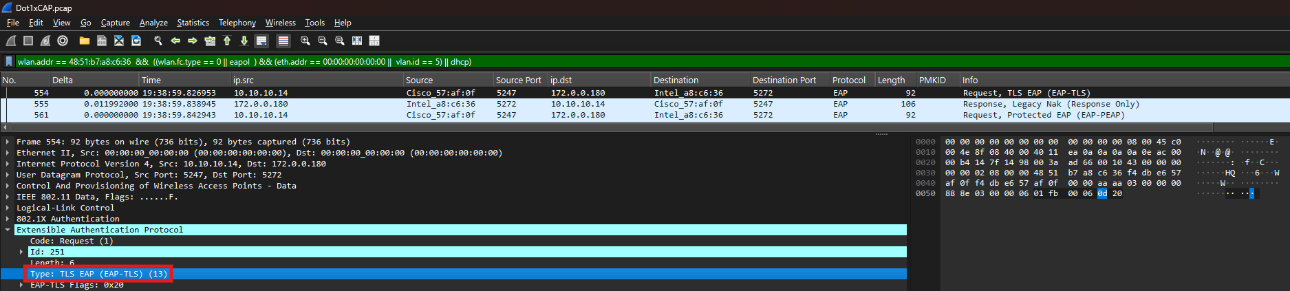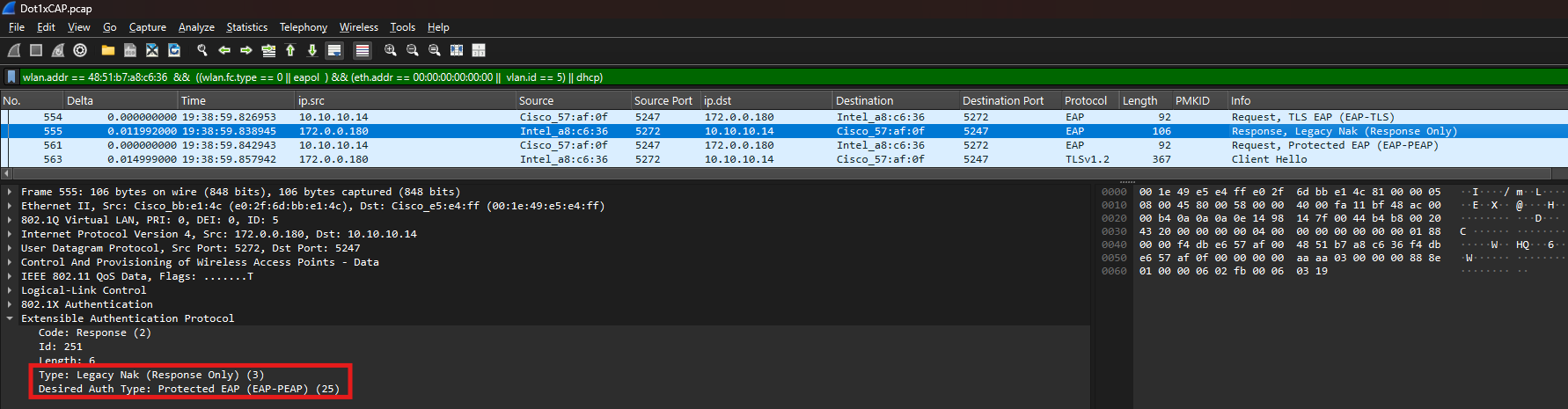 The “NAK” Message: This is the client saying, “I don’t support EAP-TLS. I would prefer to use Protected EAP (PEAP) instead.”
