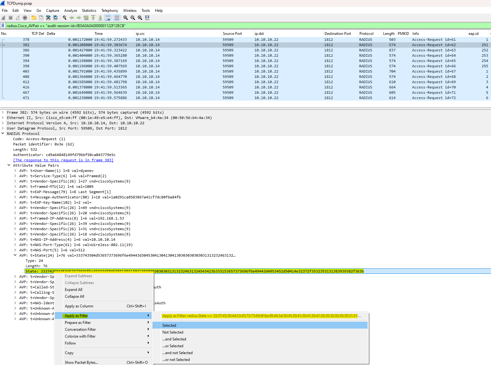 Efficiency: Capture files are significantly smaller because we are only looking at one specific client session rather than the entire RADIUS stream.
