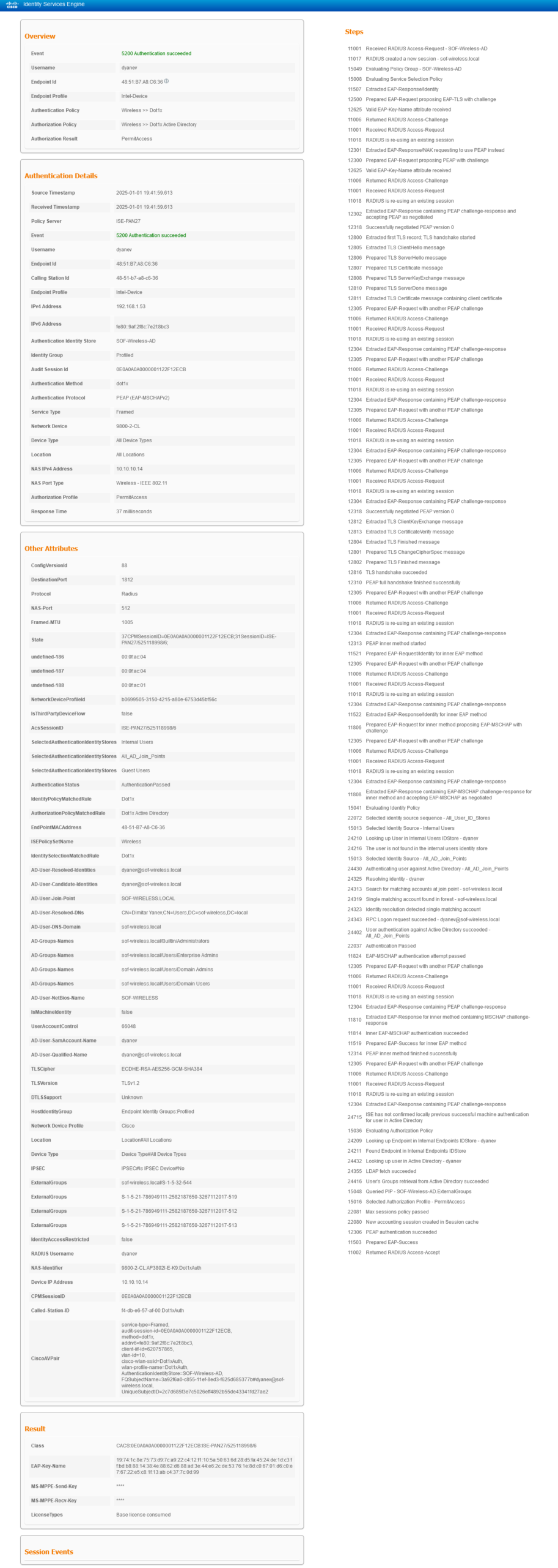This is where you see the “Result.” ISE tells you exactly which policy was hit—or why the credentials were rejected.